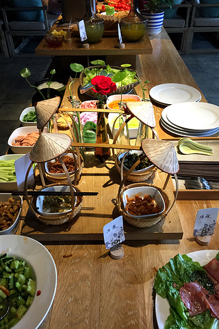 因为花间堂是从云南开起来的,所以他们家的米线非常正宗。早餐有自助,种类很多,味道不错