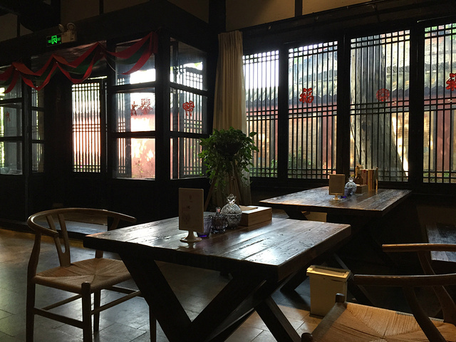 【位置】位于阆中古城东部,坐落在古城最繁华的武庙街上,是著名的度假酒店花间堂的一部分,多多的面包树招牌不是特别显眼,但找到花间堂阆苑店也就找到面包树了。 【环境】店内古色古香,桌椅非常舒适。他家有一条9岁的古牧叫宝宝,特别乖,客人都非常喜欢他。 【卫生】卫生条件尚好,餐具清洗的基本干净。 【服务】因为是酒店的餐厅,虽然对外营业但服务员并不如他们酒店服务员那么专业,但无论是服务态度还是对业务的熟练程度都还不错。 【口味】口味可以打4.5分,在正宗川菜的基础上做了一点点调整,辣味不会太重。早餐有自助,种类很多,味道不错。 【价格】价格很合理,菜量也够,两个人店两个菜完全够吃。推荐小炒肉、担担面和米线。因为花间堂是从云南开起来的,所以他们家的米线非常正宗。