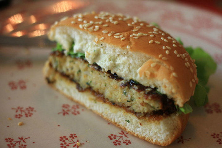 Teriyaki就是日语里照烧的意思, 这个汉堡的“肉饼”用的是土豆泥混合其他一些素菜食材制作而成, 淋上到位的照烧酱让口感十分具有欺骗性,非常不错的尝试。
