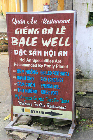 推荐1 BALE WELL 地址:45/11 Tran Hung Dao Street 这是一家简单而又经典的会安特色餐馆,隐藏在一条小巷之中 说简单是因为他们家只提供一种套餐,便是烤肉沙爹、春卷和煎饼 看着服务员将这些食物依次端上来,然后示意我将这些食物都包在米纸中最后卷起来蘸酱食用 一口下去有一种非常满足和丰富的口感!