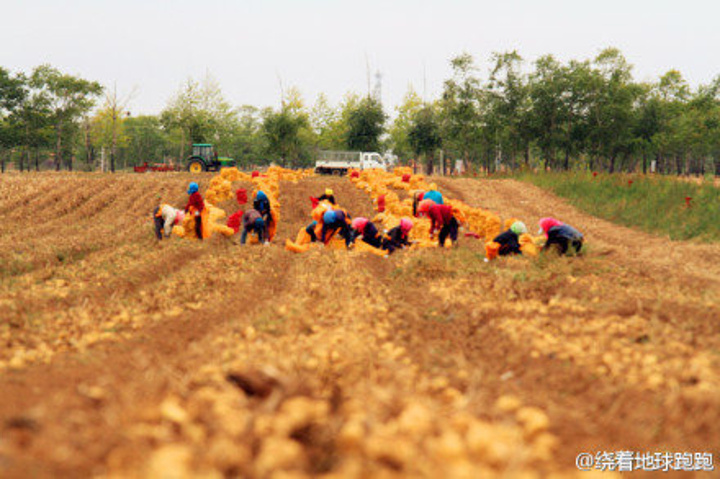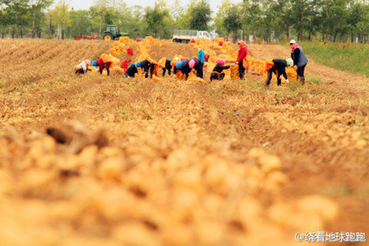 从野狐岭出天路(东线),沿S242公路去往张北草原。也许是我们走的地方不够,张北草原上热门的游玩地真的是很让人失望。我们随意的信马由缰,却看了最质朴的草原风光:草原上干活的妇女们,艳丽的头巾构成了草原上一道美丽的风景线。当地以特产马铃薯闻名,50元钱可以买近百斤的马铃薯呢。