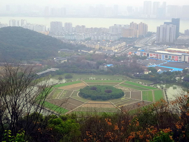 特别小众的地方,八卦的田地,每块种植的植物不一样,所以四季会展现出不同颜色的八卦田。从青旅出来坐42路到终点下车。看到八卦田之后往山那边走,后面是玉皇山,需要门票,学生票5元。上山后在半山腰的紫来洞可以看到八卦田的全貌。顺着石阶路往山顶走,到山顶可以看到整个西湖。山不高,正常的速度大概半个小时40分钟就能爬到山顶了吧。