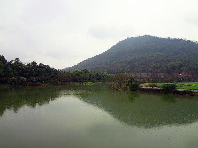 看到八卦田之后往山那边走,后面是玉皇山,需要门票,学生票5元。下雨天还来爬山的人真的没几个