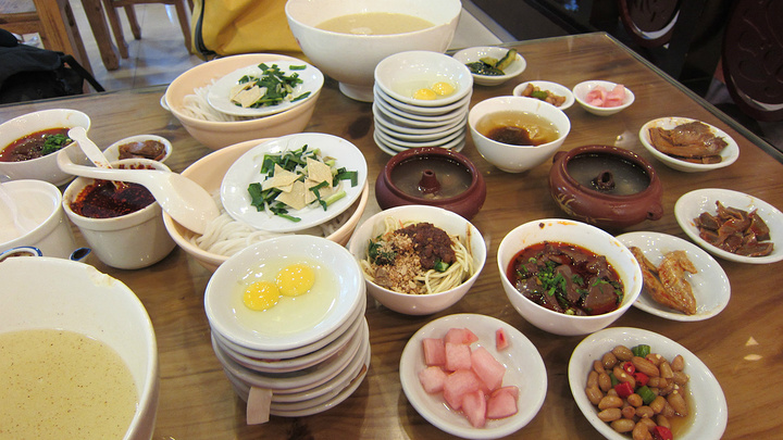迅速存好多余行李,开始了云南第一吃——建新园过桥米线(面对昆明站大厅左手边),这家价格公道、味道正宗,是个不错的选择。我们要的是最贵的那个套餐,里面除了过桥米线,其他各类小吃也是一堆,汽锅鸡、血豆腐、鸡丝凉面、卤鸡翅……