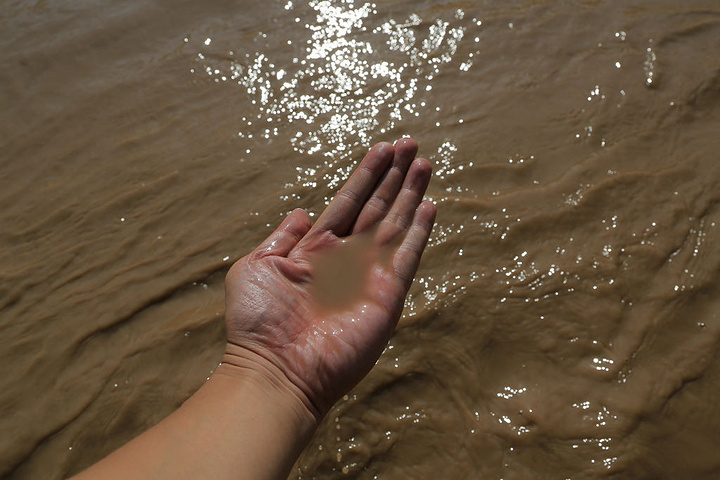 掬一捧水。这可是我第一次亲近黄河水呢。这水果然和长江水差别巨大:长江水捧起来基本是清的,可见悬沙,这黄河水就是泥汤了。
