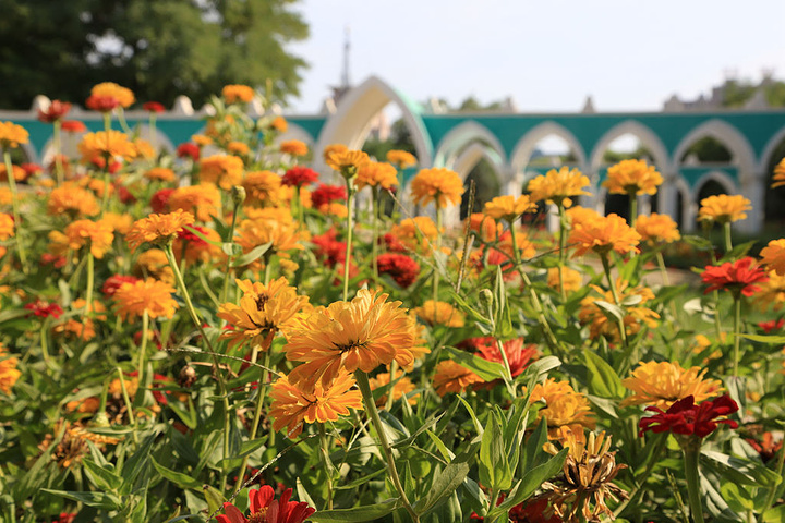 市民休闲广场里的雏菊开得正烈。
