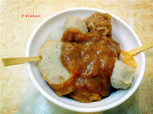 逛累了后罪恶的……深夜十一点半……店门都打烊了只好在街头享用~上过电视呢,甜不辣肉圆碗粿都是推荐