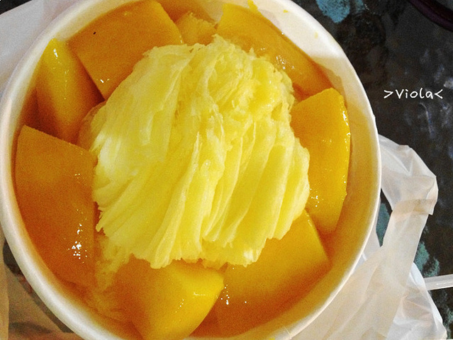 逛累了后罪恶的……深夜十一点半……店门都打烊了只好在街头享用~著名的芒果恰恰芒果雪花冰! 爱惜身体的小朋友们还是不要学习我这种自虐型旅游了,今天早上三点起床,晚上两点睡觉,况且已经是旅游的第十几天了~再这样下去真是耗不起哈~幸好西门橙舍的床很软~