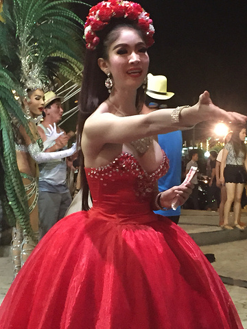 这个真心推荐。开始男朋友知道要去看人妖秀说:人妖有什么好看的,结果整场show他鼓掌最凶。哈哈哈。票我是在淘宝上买的110RMB是VIP位置,挺靠前的。建议在网上订好票,因为到现场买普通票都要800株,人民币160的样子。贵很多。唯一一点不好就是表演都是假唱,但是布景真的堪比春晚现场,哈哈哈。如果你买到第一排的位置,还有可能被人妖调戏哦。我们看的是七点半场的,大概70分钟的表演,然后就可以到场外去和人妖照相了,小费40株起步的样子。另外说真的,有几个人妖长得真心美,身材真心好。男朋友让我和人妖拍照,我拒绝啦,哈哈哈。对了,整场秀都是禁止拍照录像嗒