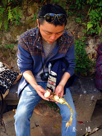说是煮鸡蛋,其实是挖出来的一个个坑,游客们买的鸡蛋、玉米自己丢进去,自己守着。拿错了可没人管啊!说是煮,实际上是沏熟的。对于鸡蛋来说,只要8分钟便可熟,蛋白鲜嫩可口。