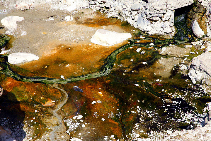 从一个小山坡下去,就能看到有硫磺泉开始喷发,温度很高。大中午的,热啊热啊!