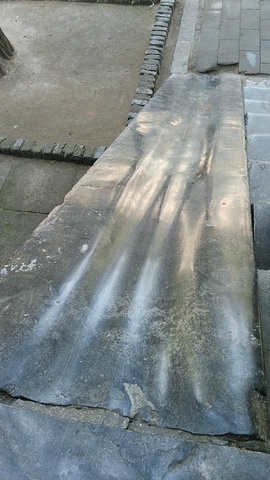 偶然看到一顽童坐在上面滑下来,当滑梯玩呢。再看这光滑的表面。应该是游人坐在上面往下滑,经年累月就成这样了吧。