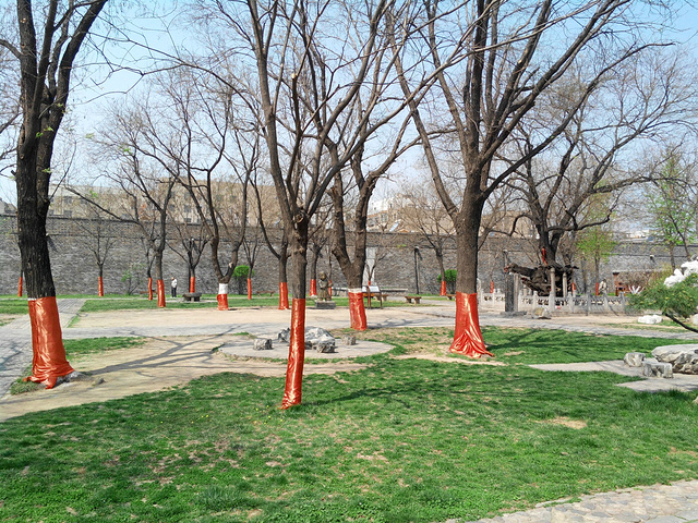 摸福游戏--闭眼摸着石头顺时针逆时针各转三圈,然后去摸北面的柏树。古人的游戏也挺有趣的。