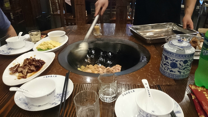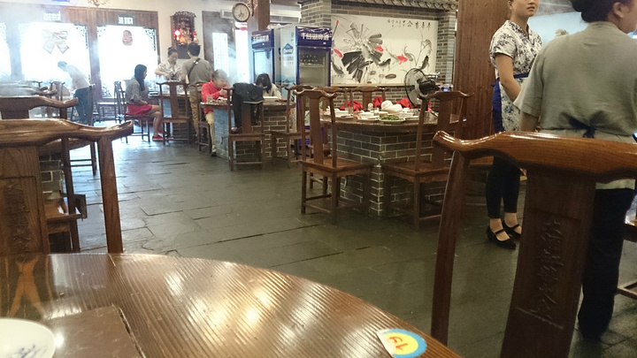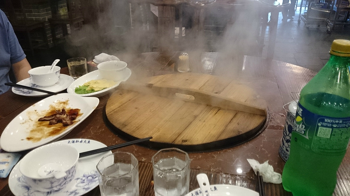 大酒缸柴火鱼杭州有两家店,一家是在东新路,一家是在转塘这里。这次我来的是转塘这边,靠近中国美术学院象山校区,俗话说得好,大学旁边美食肯定多,这话一点也没有错。开车来的,车可以停在餐馆门口前,沿街有停车位。一进门口就可以看到一个很大的水池,是用来养鱼的,活鱼先杀鲜度可以保证,而且事先养过吐泥,那鱼的泥腥味自然也大减。店内还有现做的豆腐皮。新鲜,非常嫩稍微有点遗憾的是配的蘸酱并不是十分理想,没什么特色,让这道原本纯正的豆腐皮反而失色了点。价格稍微有点贵28元一份量也不多。 除了吃老柴火的鱼,也有鸡,以及店里当天卤的一些卤味,包括猪耳朵,猪尾巴,鸭肫等等。其他还有一些家常小炒可以选择。厨师会到你旁边帮你现场直接烹饪柴火鱼(或者鸡)我们点了鸡。你可以加料进去,需要单点,(就好像吃火锅,可以加很多蔬菜进去。)厨师会帮你 一一加进去。在烧到最后的时间,会加一整瓶啤酒进去,然后闷锅。服务员会是不是来看一下,大约7,8分钟就烧好了,然后服务员会撤掉炉内柴火。很有意思的一种土吃法。 提醒:柴火放进去的时候,会有一点烟,比较呛鼻。之后就不会有了。 店内有免费加的大蒜,自己不需要再点了。量还挺多,是在柴火灶烧好之后才加的。 店内打包盒一元一个。还有店内小毛巾也是一元一条,如果不需要请不要拆开哦。不过我们当时没有拆,服务员却算进去了。还好查看一下账单,之后退回2元钱。他家有团购现金券可以用。需要提前10分钟预约。总提来说性价比一般,味道还可以,新鲜的土吃法,也值得一试。