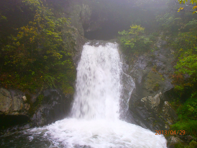 太极潭。峡谷继续向前沿申,但已没有了游道,只能回头,去看鸳鸯瀑布。潭中水有延年益寿之功效