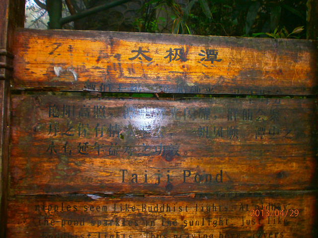 太极潭。潭似太极,波如佛光。正午时分,艳阳高照,潭中佛光闪耀,群仙会聚,拜之有情人平安,一帆风顺。潭中水有延年益寿之功效。