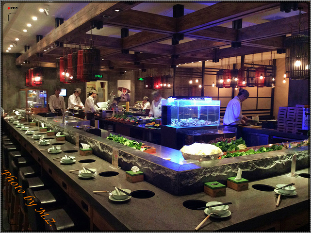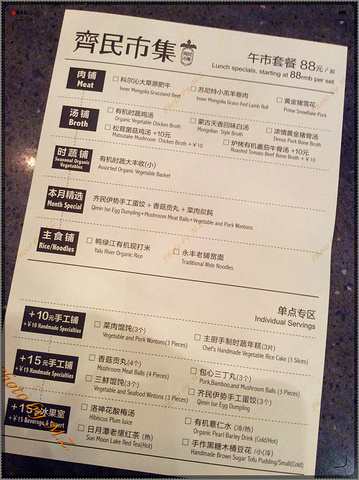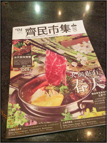 齐民市集位于高岛屋的7层,是一家主打有机食材的火锅料理店,聚公司很近与同事午餐聚餐时前往尝试。***位置及交通:餐厅位于长宁区古北商圈,周边都是日本人社区,高岛屋的7层,交通便利,10号线伊犁路地铁站3号口出站即是,可选乘电梯直达7层。***餐厅环境:餐厅所属的楼层为餐饮楼层,环境都很不错,大大激发了食欲,而齐民集市主打的是自然有机,所以装潢风格上也侧重使用自然的色调,比如原木色等。进入餐厅,首先会被一个回字型的吧台空间所吸引,四周摆放着一份份的精美的火锅食材,红色的肉绿色的菜白色的菌菇,颜色搭配丰富。另外就是吧台空间内厨师们繁忙滴准备食材中,全透明的空间设计,让客人可以看到全过程。吧台有一圈位置,而两边也各有一排四人一组的餐桌座位区,环境还可以,不过中午还是很抢手的,尽量早点去。***餐品:选择了午市套餐,大约88到98一位,有肥牛羊肉等主要食材的选择,外加一些小菜或饮品,主要都是涮锅的食材。刷锅是每人一个单独的小锅,温度可自行调节,控制器在桌的侧面。***味道:食材主打是有机,但坦白说品尝起来没有感到什么区别,和平时超市买好的回家刷的味道差距很小。调料可根据自己的口味调制,但建议少放辣椒,真的很辣。***价格:中午点的午市套餐外加饮品,在人均110左右,个人感觉小贵。***结语:交通便利,环境不错,食材新鲜,处理过程透明,味道一般,价格小贵。
