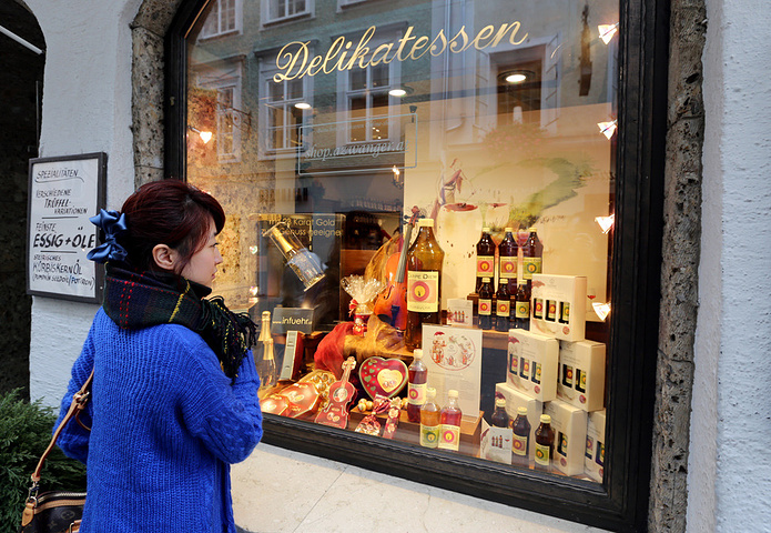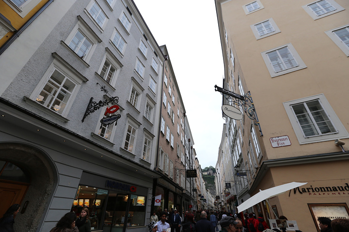 今天的第一个目的地是奥地利著名的粮食胡同,这里如果按照攻略来介绍应该说说莫扎特,但是在我心里,这里简直就是童话世界,哪个女孩子不爱童话?! 没错这天依旧阴阴的,但也是因此,我和相公另辟蹊径,很认真的逛起胡同里各型各色的店铺来