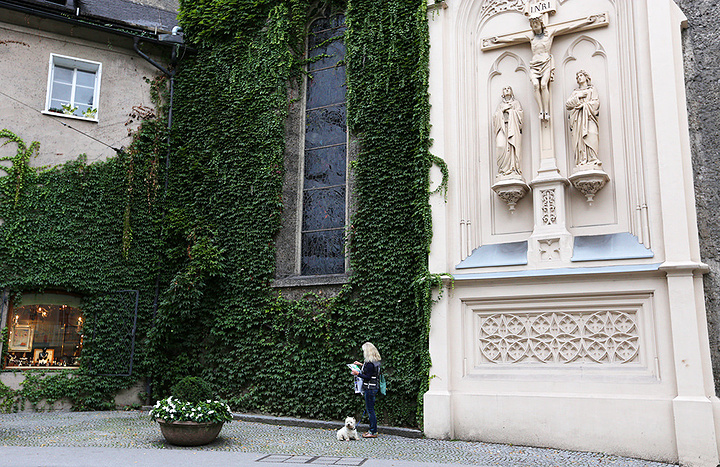 萨尔斯堡粮食胡同街角的教堂,很安静的场景