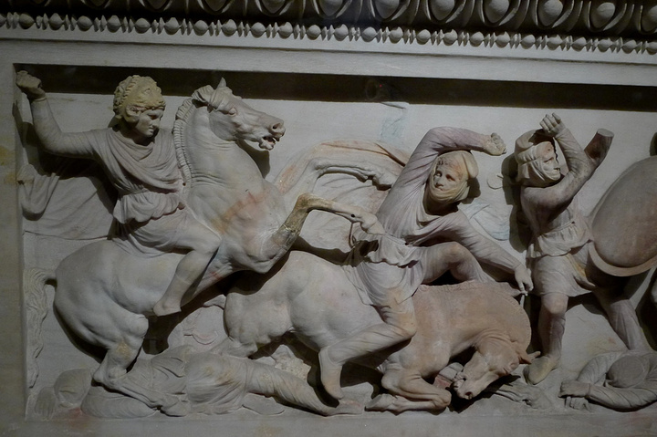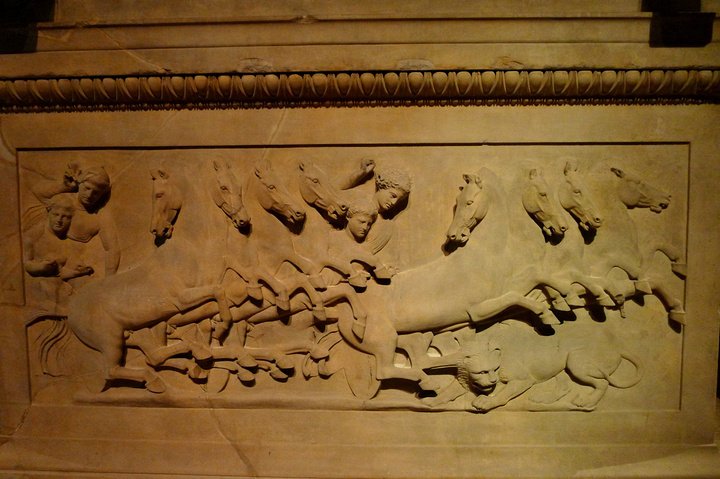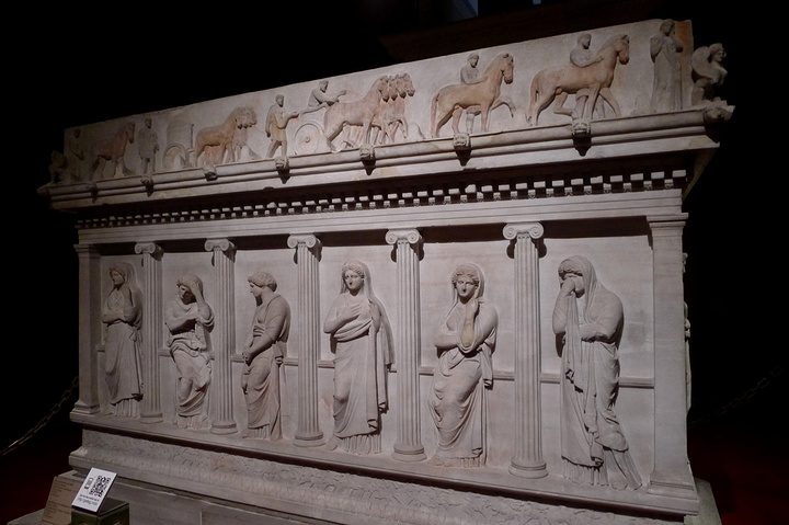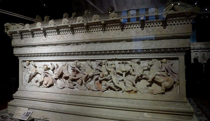 伊斯坦布尔考古博物馆以石棺闻名于世,而石棺中最著名的是亚历山大石棺。其实这个精美的石棺属于西顿国王Abdalonymos,因石棺上关于马其顿国王亚历山大和波斯人激战的浮雕而得名亚历山大石棺。 石棺在公元前四世纪用最好的雅典pentelic大理石雕成,人物形象鲜明,工艺精湛,保存情况也很好,还有部分色彩留在了石棺上。