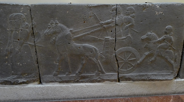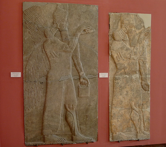 亚述时期的王宫大门,半牛半鹰的人神Lamassu镇守着王宫大门。赫梯和亚述都是尚武,甚或穷兵黩武的民族,亚述出现了历史上公认的暴君——亚述哈尼帕尔二世。 因此,在亚述和赫梯的文物中总有则重代表力量的神祗和猛兽。 半牛半鹰的人神Lamassu