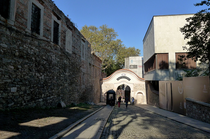 我们本来的计划是先去托普卡帕皇宫,然后去伊斯坦布尔考古博物馆。结果刚到皇宫门口,就被排队等着进门的汹涌人群惊呆了,决定还是先去伊斯坦布尔考古博物馆。 我们的决定是对的,估计坐游轮来的游客一般是不来考古博物馆的,所以这里的人并不多,凭我们的博物馆通卡,畅通无阻。 皇宫旁边的小路直通博物馆。