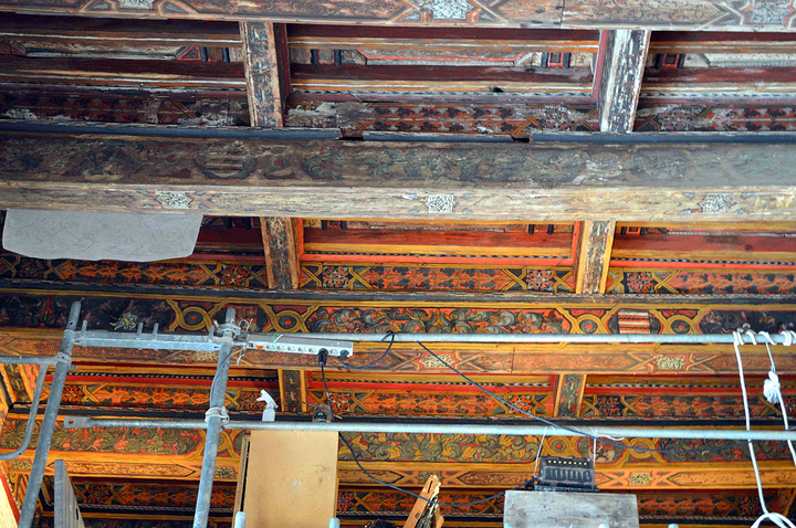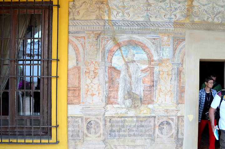 人们在部分房间厚厚的墙粉后面发现了16世纪的壁画,第一第二个房间展示的就是那些珍贵的古代壁画。不可以拍照。怎么办?我看见外墙也有些壁画,虽然面积和质量不能和里面比,但是大致可以给你一个交代。