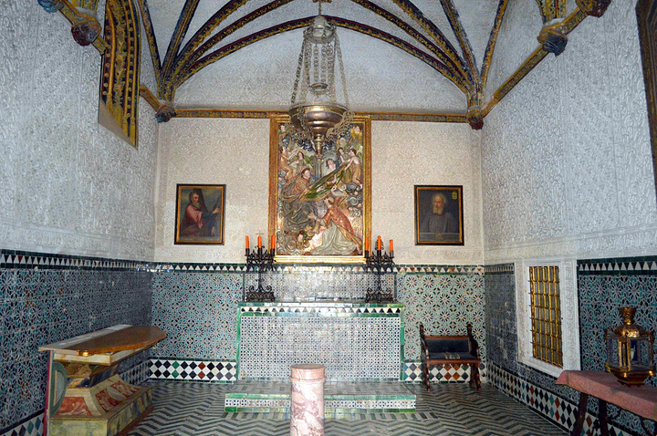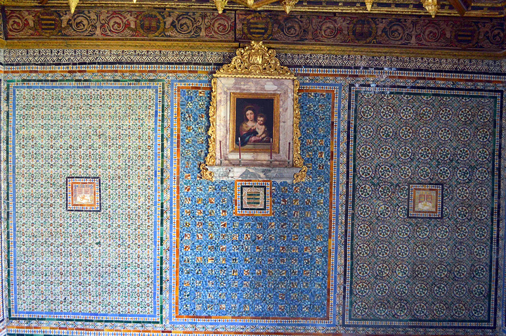 天花板也是金碧辉煌,像是塞维利亚王宫的微缩版,看上去有点旧 - 那些原本就是古迹么,太新了反而不像话。