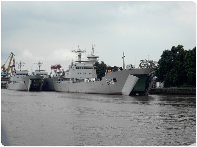 江面上停着很多军舰