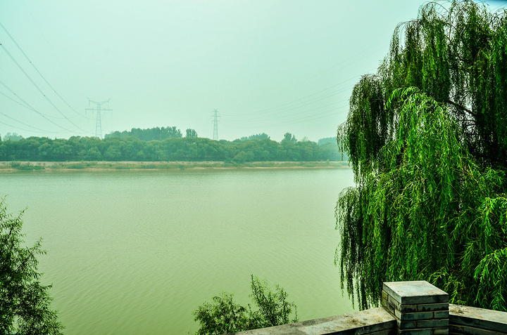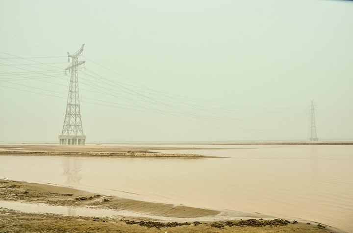 这是大道左边的湖泊,想不通这个湖那么清亮,右边的黄河却那么黄、、