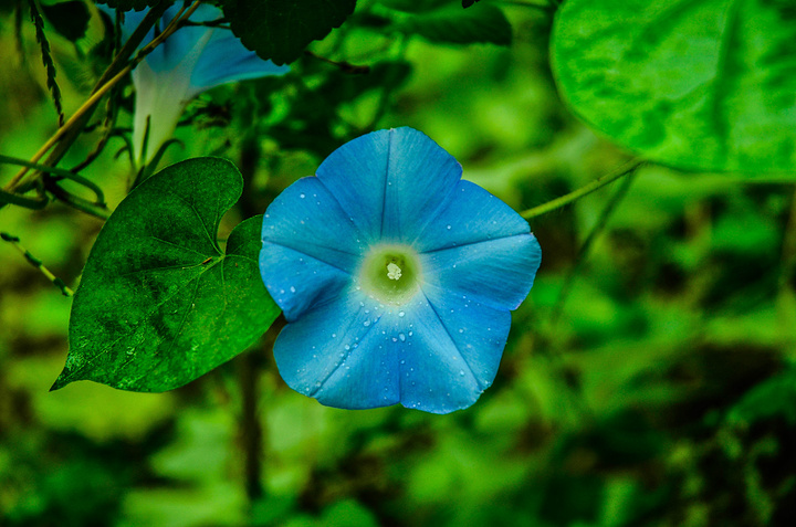 这个时候下了一场下雨,大概15分钟,然后发现了一朵漂亮的牵牛花、、