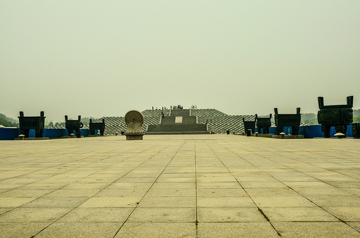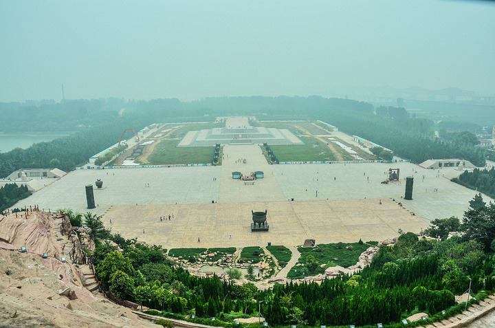 上山后,可以看见两个洞,走进去,里面有休息,买水,和手工凉皮的地方、、 这是在山上远望祭祖大台的照片、、感觉还是很棒的吧。 要去看黄河记得,下山后面对祭祖大台直走,笔直穿过大台,然后向左拐进去,门票背面也有地图记着对照一下、、