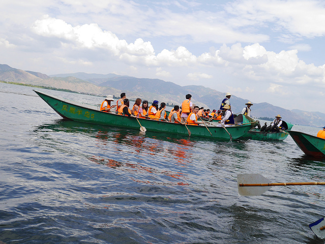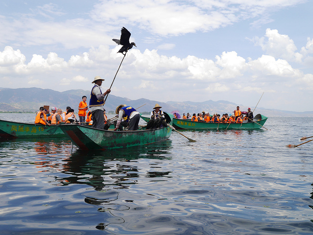 吃完中午饭后直接来喜洲这边的 洱海游船。一条条小船陆续上座,船划到湖中海能看到鱼鹰表演,接下来还有金花跟啊鹏哥的歌舞演出呢,挺精彩哦。 这里介绍一下在大理白族称女生为金花,男生为啊鹏哥。这个是后来听大家说才知道的,一开始人家对着我喊金花我还不知道啥情况呢,哈哈。。。