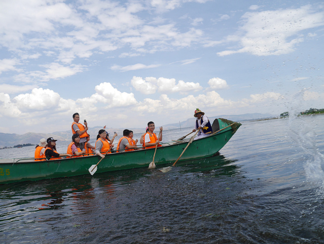 船到中心的时候大家好竟然被隔壁小船上的伙伴“袭击”了。吃完中午饭后直接来喜洲这边的 洱海游船