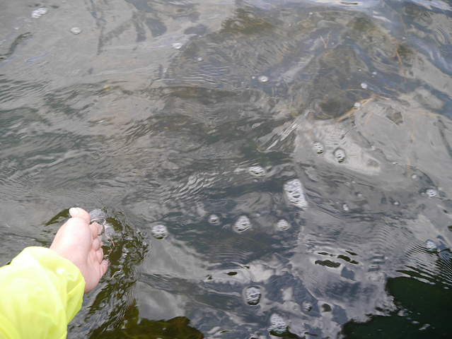 这个就是鱼鹰表演了,渔夫把准备好的小鱼丢到水里然后鱼鹰一下就给抓上来,好是厉害。
