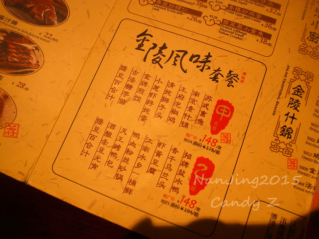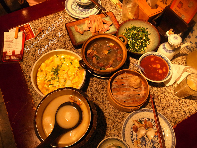噔噔噔.....逛完一轮之后,肚子咕咕叫,饥肠辘辘的我好幸运啊!在夫子庙前面碰到了也是下午刚到的同寝室的四川妹纸,我们就结伴去尝尝有名的“南京大排档”了!这点让我实在太高兴了,终于有伴一起吃饭了,可以尝到更多好吃的了!Yeah! 1.“南京大排档”可算是一张南京的名片,来过南京的人必定都来这里尝过,我们当然也不会错过啦!我来之前可是做足了功课:招牌盐水鸭,天王烤鸭包,古法糖芋苗,酒酿赤豆元宵,民国美龄粥,虾黄豆腐,大拌干丝....等等。肚皮空间有限,2人能尝到的不多。 2.为了迎合游客的需要,还特别推出了一些套餐,每个套餐里面有好几种都是南京大排档的招牌出品,满足游客的美食需要。不用再烦恼点什么吃的了,这点还是不错的,站在顾客的角度出发! 3.这里还得赞一个,其营销手法多样化,与时俱进,现在连排号都用微信就可以实时查询,不用担心过号。其他媒介(微博等都会及时回复,我吃完就发了一条微博,回复还是超快的,还能进行多方营销宣传,值得赞扬!赢得成功的经营果然不可小觑!) 4.除了这家以外,南京大排档已经是一个南京有名的饮食品牌,还有其他分店的噢,大家可以根据自己的行程安排到以下几家地址进行品尝。(狮子桥店、德基广场店、中山陵店、国际广场店、龙江店、夫子庙平江府店、江宁万达店、夫子庙水平方店,其中德基广场店就在青旅附近,不行10分钟就到,非常方便噢!) 5.如果不想吃这个可以去夫子庙的蒋有记虽然简陋,价格也小贵但是依然不能否认他们家的牛肉锅贴实在是好吃。至于小吃城那些嘛,大家懂的,真的不怎么好吃,建议大家还是别浪费钱了。
