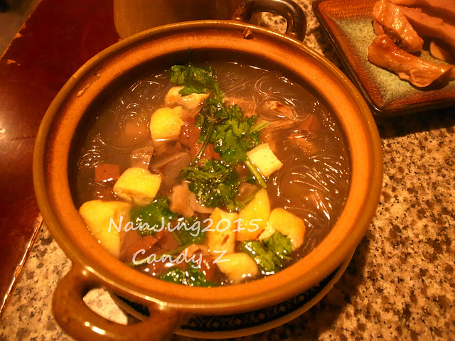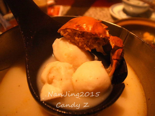 我俩太饿了,人比较多上菜有点慢,一边上菜一边吃,只能拍到这样的画面了,请各位体谅一下咯....嘻嘻。这里的赤豆元宵一点都不好吃,也不用点,想吃最好的,去夫子庙附近的莲湖糕团店的才是最好吃,最正宗,最地道的!