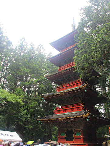 过了牌坊后,左侧有一座五重塔。这座塔楼最初是由若狭国小浜藩(现今的本州福井县境内)藩主酒井忠胜于庆安3年(1648年)所建,文化12年(1815年)毁于一场大火后,如今看到的五重塔则由小浜藩主酒井忠进于文政元年(1818年)重建。