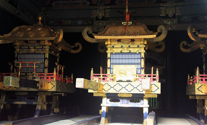 穿过维修中的阳明门,左侧有一栋神轿祠堂(神輿舎),里面放着每年5月18日和10月17日举行春秋渡御祭时使用的神轿,轿中用来安置神灵。祠堂里共有三座神轿,除了供奉德川家康,还有丰臣秀吉以及日本首个幕府--镰仓幕府的第一任将军源赖朝。