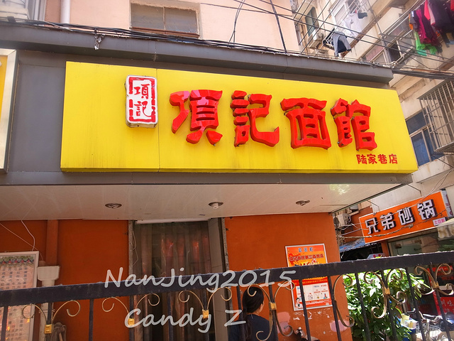 项记面条是手擀的,很有咬劲;配料真不少,什么皮肚、火腿肠、肉丝、青菜,看着就有食欲;汤头热热的,泼上红红的辣椒油,真是太美味了。只是地方小,生意又好,一到饭点总要排队,想去尝尝鲜的建议错开高峰期。(网评) PS:由于行程有计划,肚皮空间又有限,这家找到了但只是路过,秋天的时候再来尝尝吧哈哈。 【地址】:秦淮区明瓦廊陆家巷13号(近三元巷)。【公交】乘坐35路至【新街口南】下车,步行即可。