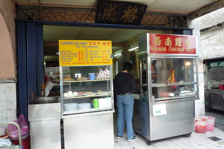 在槟城吃榴莲甜品系列并没有马六甲普及化。格成茶室在槟城的光大对面,很多人喜欢来格成吃红豆霜,在槟城只有此家的红豆霜有加榴莲。店里依然保持旧时咖啡店的桌椅,在槟城能保留此桌椅茶餐室不多了。 格成茶室有一个规则,进来的顾客一定要点饮料,不然就要支付桌费。 店里的白斩鸡和油饭都是我很爱吃的,味道谈不上超出色,可是烧腊的咸香麻油味恰好。我们更享受坐在老茶室的四方桌面对面在狭窄空间吃一餐!店里的叻沙和五香肉都值得尝试。 隔壁就是小田佳园,如果你想要买凤梨酥做伴手礼,非常方便。 附近都是摄影相机店为主,槟城的摄影发烧友爱逛的相机店聚集地,想要买记忆卡或者相机都可以考虑。(有人说槟城的相机价钱便宜过吉隆坡的市场,你相信吗?)