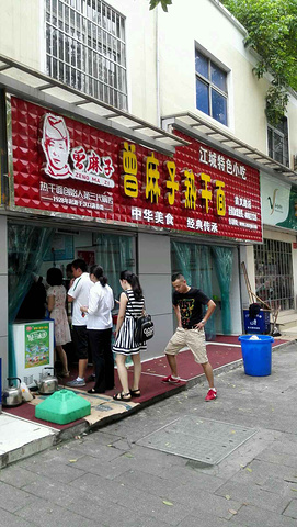 曾麻子热干面是江城名吃啦,可能在知名度比不上蔡林记,也是热干面第三代正宗传人,在武汉有不少分店呢,最近发展挺快,这家在江汉区银松路,中山公园后门位置,交通便利,42.705.426.706.507.地铁二号线等多条线路通过,附近,店面不大,装修的还挺有特色,每天早餐很多人排队呢,主要就是热干面,价格实惠,普通的金牌热干面四元,大碗的五元,牛肉的牛杂的12,还有红烧牛肉面也是12,同类的热干粉价格也一样,其他虎皮鸡蛋1.5元,热干子1元,粥类,绿豆汤,饮料等等一般都是两元,店面环境还好的,整齐排放,有一些店面和品牌宣传的贴画介绍,配料可以自己添加,辣子酱,红油,腌菜,酸豆角,小葱,等等,酸豆角挺好吃的!服务态度也蛮好的,热情和善……来武汉的朋友可以去尝尝,推荐!