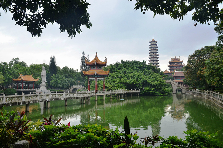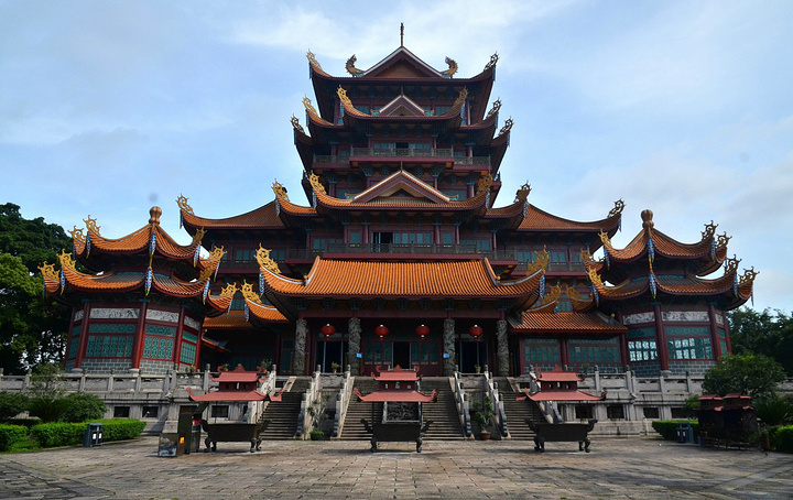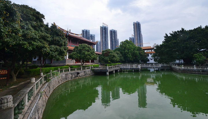 西禅寺名列福州五大禅林之一,为全国重点寺庙,位于西郊怡山之麓,工业路西边南侧。古刹大门坊柱上镌刻一副楹联:“荔树四朝传宋代,钟声千古响唐音。”这是清代周莲撰写的联句,点明“西禅寺”是唐朝的古寺。 我对寺庙不是很明白,权当是逛公园来看看,谁让它那么有名呢。 进了公园,游客很少(当地遛弯的都少),非常清净,不错!倒是这一池乌龟惊着我了,所以我猜想,这座水池一定是善男信女的”放生池“; 难怪福州又叫做”榕城“,真是榕城,到处是大榕树,夏日里非常凉爽怡人; 公园里面有棵荔树可是不得了,宋朝的!遗留至今,称作”宋荔“,非常有名气; 值得一提的是,西禅寺后院里有座建筑,大白天都阴沉沉的,近看才知道是存放骨灰的,家伙!能存在这里面的人物也都非同一般吧。
