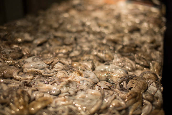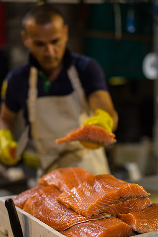 9月17号一早去拍鱼市场。 天还没有亮,鱼贩子们就开始忙碌了,早早地准备着。冰是现铺的,海鲜是当场整理。 鱼市到中午就收市了。