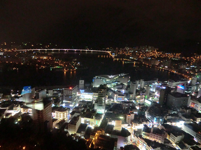 花上4000韩元买张门票,便可乘着高速电梯达到120米高的瞭望台上,整个釜山夜景尽收眼底