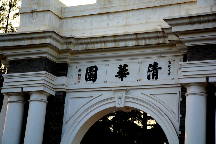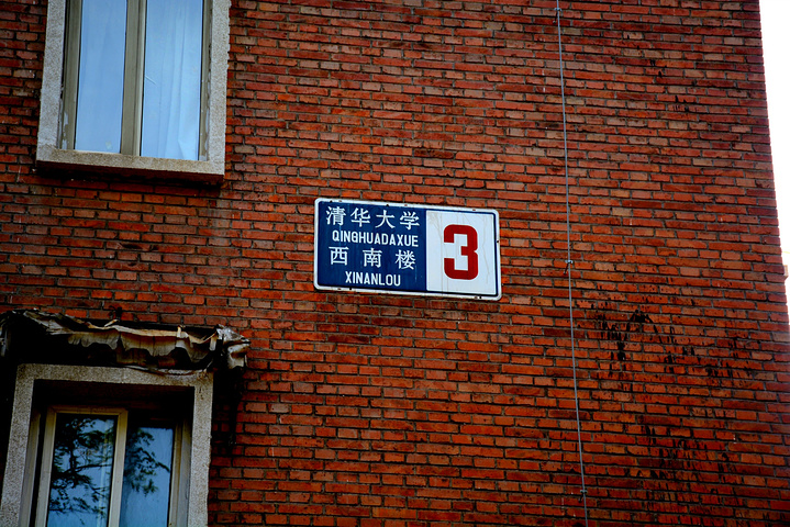 出了圆明园东南门长春园出入口,沿着中关村北大街向南走个一公里左右吧,就是清华大学西门。到西门的时候已经五点多了,又过了对外开放时间,保安拦在大门口不让进。 才5点多,不想这么早就回旅馆,看到旁边租自行车的摊贩号称只要租他的自行车绝对进得了清华大学,但是清华西门明明连骑自行车进门的都要查学生证,我就想沿着清华大学的围墙走,绕到小门应该进得去。 顺着清华围墙延伸的方向走了半个小时左右,感觉应该走了有3公里左右的脚程吧,后面看地图才知道自己是沿着清华南路走,文化南路两侧都是围墙,一边是清华一边是北大。终于走到了清华大学西南门,西南门是个小门,没有任何多余的装饰,只有一个岗亭一根拦车杆,一名保安在岗亭拦过往的机动车,行人自行车可以自由进出,清华大学的大门终于向我敞开了。