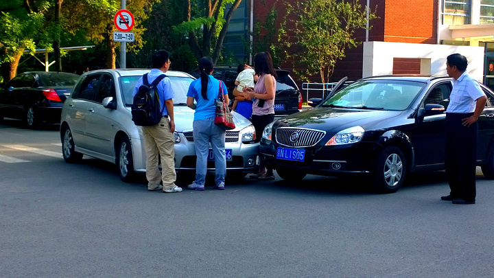 清华内的交通事故,小擦伤,挺文明的,相互交换一下名片就避免了冲突。