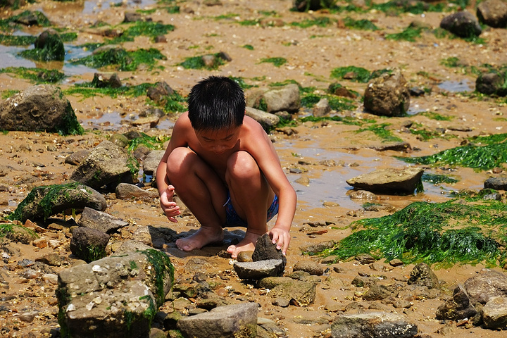 这里也是孩子们的乐园,但这样光着脚可是很不安全的啊,礁石上面有很多锋利的贝壳,很容易把脚划伤的。