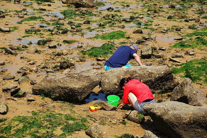 这里沙子很细腻,又有很多的礁石,看上去就是个赶海的好地方。