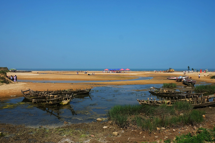 计划下午去威海,上午本来准备就在吴家台旁边的第四海水浴场游游泳,看看礁石,中午退潮的时候赶赶海的,但是渔家主人建议我们去太公岛看看,说那里退潮后挺好看,赶海也不错。于是先去第四浴场玩了会儿,中午吃完饭收拾好东西,告别了特别朴实,又热情好客的荣升渔家主人,直奔太公岛。